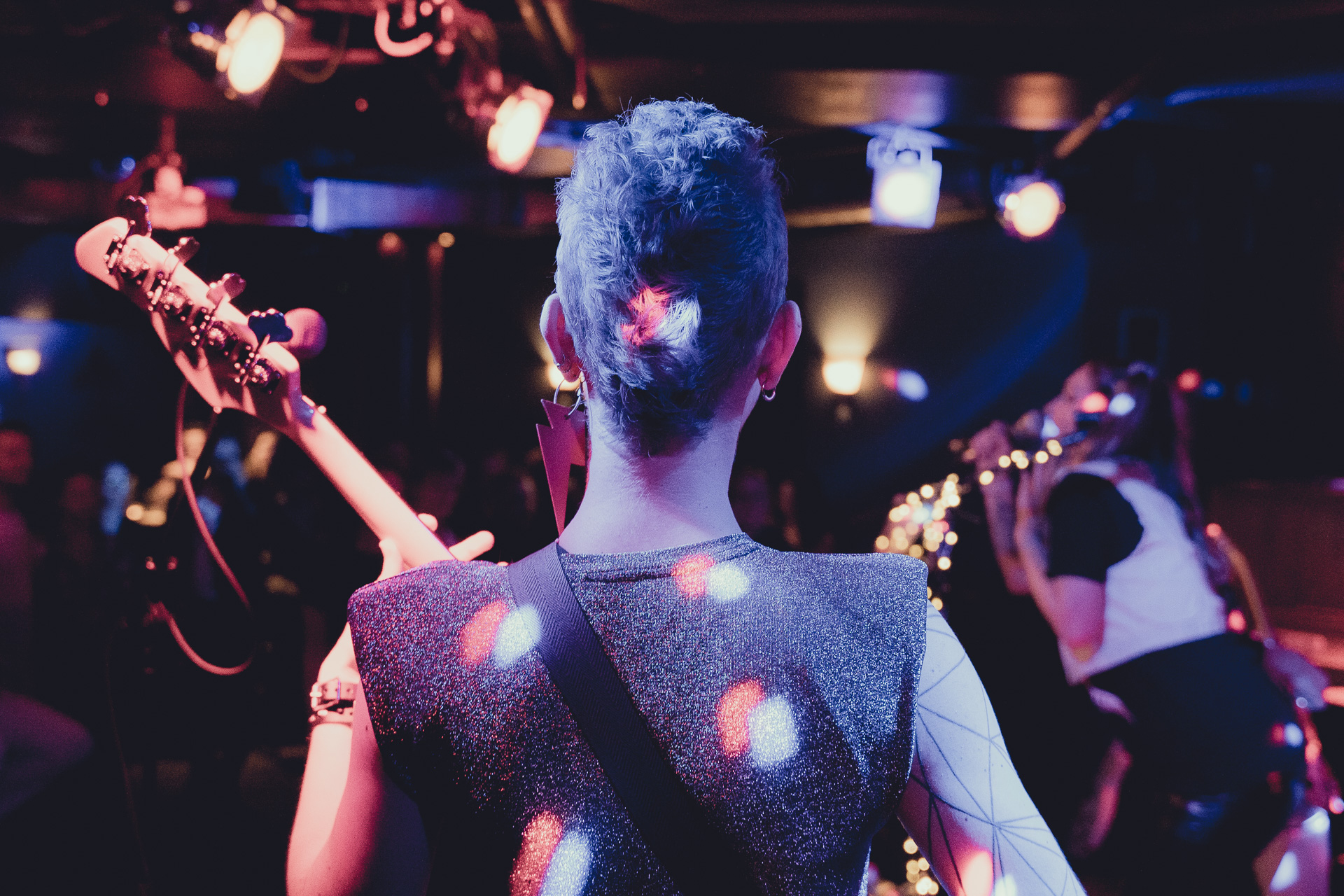 The universe is full of cool stuff — planets, dust, and ancient stars! With her infrared vision Chris Mystery can see them all. Ages ago she travelled through the Virgo cluster and was inspired by the lowest note in the universe played by a black hole. Since that time she usually plays instruments far below human audibility. However, during one of her holidays on Earth she started to transpose her favourite tunes up by a few octaves. Drawn to the radiant energy emitted by her fellow musicians she joined Fingerlyxx as a bass player. And decided to extend her stay in the Solar System. For now…